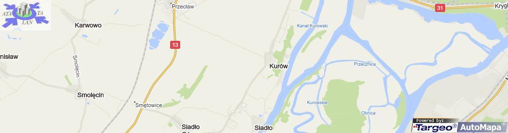Działka inwestycyjna położona w Kurowie niedaleko rozlewiska Odry o powierzchni 2,8 ha w kształcie litery "L" dłuższa część o wymiarach ok. 200 m na 60 m. Na terenie działki (na skraju) rosną przepiękne drzewa (starodrzew).