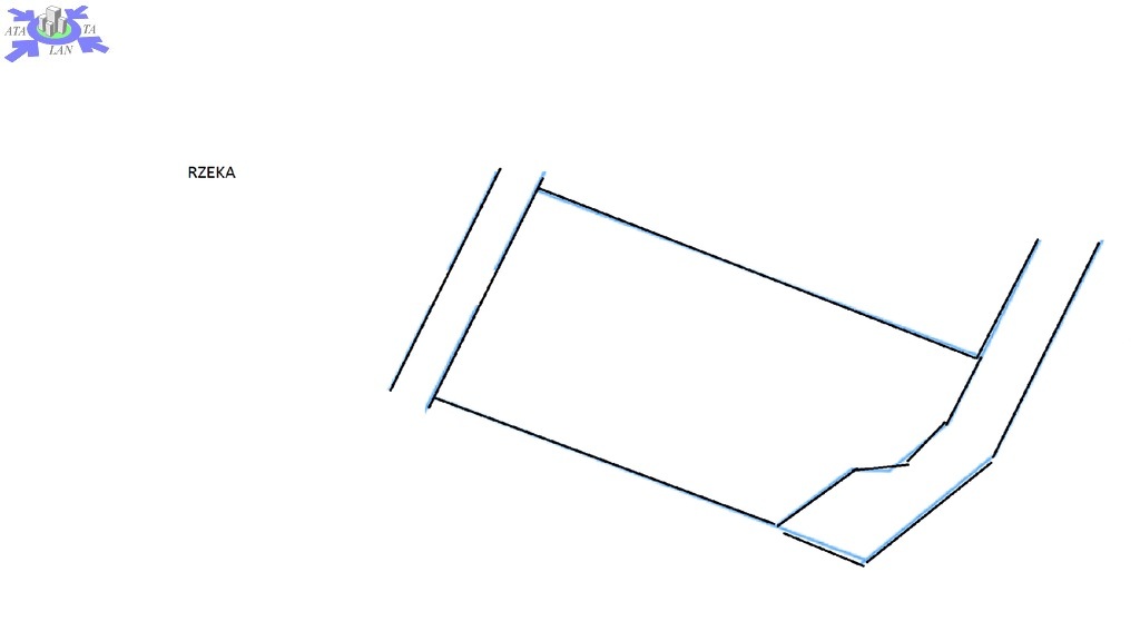 Szerokość działki od strony rzeki 34 m długość 52/67 m.