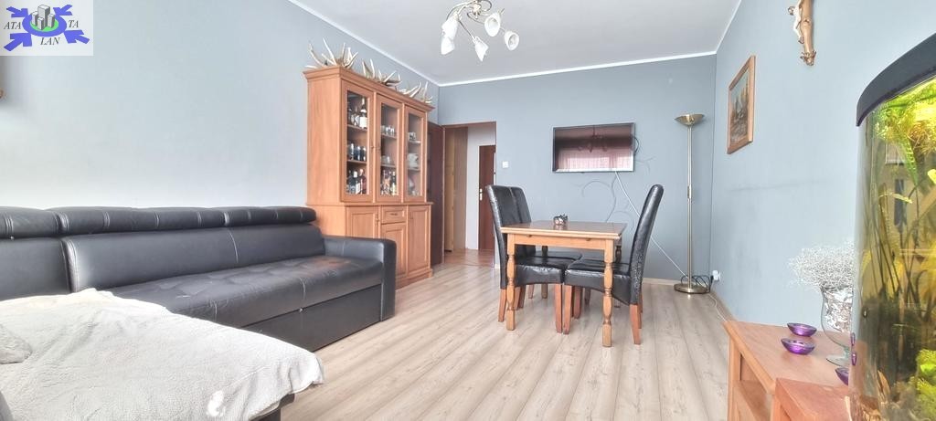 Podłogi w pokojach wyłożone są panelami, ściany gładkie malowane. Kuchnia wyposażona w meble z drewnianymi frontami i wykończona glazurą i terakotą. Łazienka w jasnych kaflach z wanną i miejscem na pralkę, wc osobno. Przestronny korytarz wykończony terakotą. Jedna z sypialni posiada obszerną zabudowę szafy, dodatkowo dwie szafy wolnostojące. Okna PCV, drzwi wejściowe antywłamaniowe. Wielkim atutem mieszkania jest duży balkon położony od zachodu oraz środkowe położenie lokalu. Coroczne zwroty za ogrzewanie w wysokości około 1500 złotych.