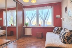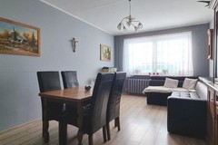 Podłogi w pokojach wyłożone są panelami, ściany gładkie malowane. Kuchnia wyposażona w meble z drewnianymi frontami i wykończona glazurą i terakotą. Łazienka w jasnych kaflach z wanną i miejscem na pralkę, wc osobno. Przestronny korytarz wykończony terakotą. Jedna z sypialni posiada obszerną zabudowę szafy, dodatkowo dwie szafy wolnostojące. Okna PCV, drzwi wejściowe antywłamaniowe. Wielkim atutem mieszkania jest duży balkon położony od zachodu oraz środkowe położenie lokalu. Coroczne zwroty za ogrzewanie w wysokości około 1500 złotych.
