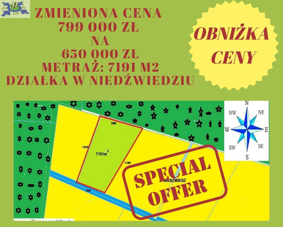 Do sprzedania rezydencjonalna działka położona w Niedźwiedziu granicząca bezpośrednio ze ścianą lasu. Nieruchomość w studium uwarunkowań zagospodarowania przestrzennego przeznaczona pod indywidulane budownictwo jednorodzinne. W granicy działki skrzynka ZK. Ujęcie wody studnia własna. Enklawa ciszy i spokoju dla osób ceniących naturalne tereny zielone. Dojazd do posesji drogą szutrową. Twoje wymarzone miejsce do zamieszkania z rodziną nie czekaj zweryfikuj tą działkę w realu. Zapraszam na prezentację.