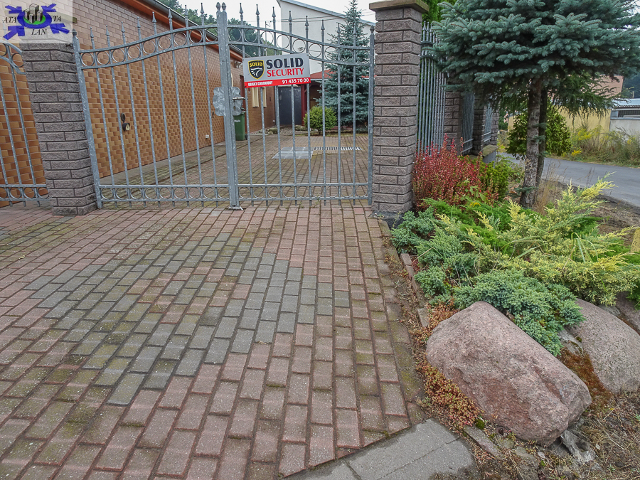 Na pograniczu Szczecina i Polic na działce 296 m2 wyremontowana od podstaw hala, biura, kuchnia i łazienka o łącznej powierzchni 106 m2. Możliwość zamieszkania i prowadzenia działalności lub biura i magazyn. Może być wykorzystana do produkcji elementów precyzyjnych, wymagających pomieszczeń ogrzewanych. Wysoki standard. Budynek został wyremontowany w 2007 roku. Powierzchnie hala 64,4 m2, biuro 27,3 m2 z tym, że można połączyć obydwa pomieszczenia i powstaje hala o powierzchni około 90 m2. Hala i biuro o wysokości 3,6 m. Wymiary hali 13,7 m długości i 4,7 m szerokości. Wjazd na halę bramą o wysokości 3,6 m i szerokości 2,5 m. Ponadto wjazd na teren ogrodzony bramą przesuwaną. Podłoga bezpyłowa, epoksydowa - tzw. żywica złota na podwójnej siatce, w bardzo dobrym stanie, ogrzewanie podłogowe zarówno w hali jak i pozostałych pomieszczeniach. Na ścianach w hali i biurze glasfiber - tapeta. Biuro o tej samej szerokości 4,7 m i 5,8 m długości. W biurze i w kuchni hiszpańska terakota. Z pomieszczenia biurowego wejście do otwartej kuchni 7,3 m2 w nowej zabudowie wraz z urządzeniami AGD. Łazienka 7 m2 z natryskiem i WC w glazurze i terakocie. Teren ogrodzony, możliwy wjazd busem na działkę i TIRem pod halę. Ogrzewanie pompą ciepła z 2016 roku. Wszędzie ogrzewanie podłogowe. W części biurowej ogrzewanie podłogowe w dwóch warstwach. Ciepła woda ze zbiornika 60 l.