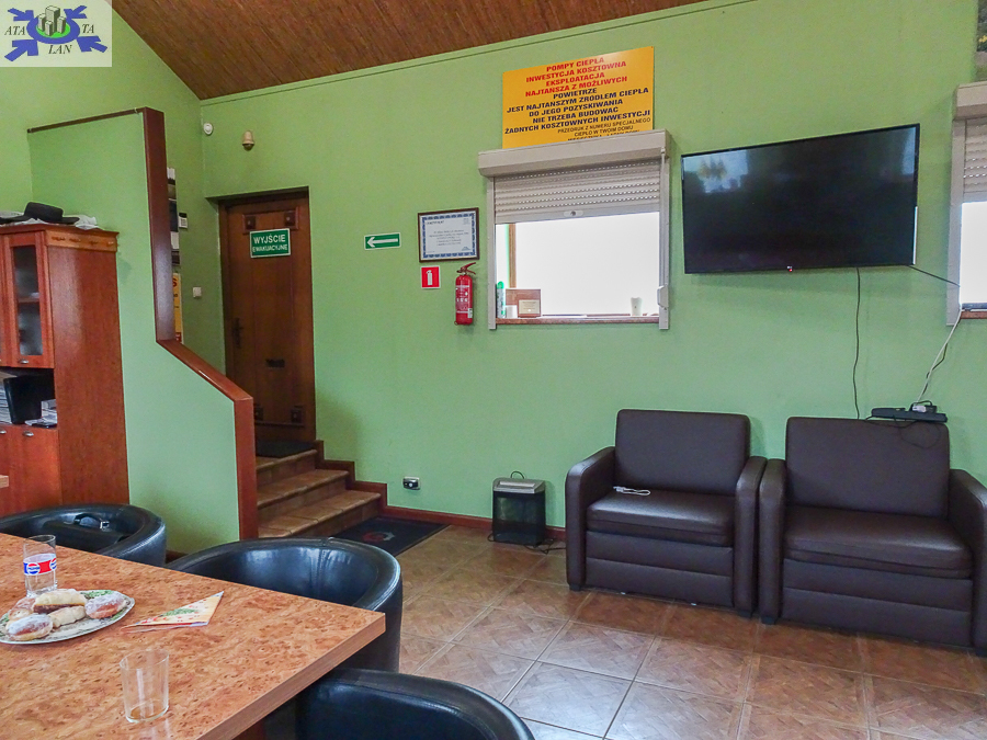 Budynek wybudowany z betonu ocieplony wełną mineralną 10 cm i styropianem na zewnątrz. Izolacja ław fundamentowych. Budynek przeszedł kapitalny remont. Zamontowano wentylację, wstawiono okna drewniane z drzewa sezonowanego, na podjeździe polbruk, 2 wejścia jedno na halę i drugie do biura. Nowy dach. Nowa więźba dachowa, nowe krokwie, dachówka ceramiczna. Ocieplenie sufitu 40 cm wełny, nowe pokrycie dachu. W budynku siła, nowe instalacje elektryczne i grzewcze. Roczna opłata podatku od nieruchomości i użytkowania wieczystego wynosi 2911 zł plus 25 zł za wywóz śmieci. Dodatkowo energia elektryczna wg zużycia. Budynek i wnętrze bardzo dobrze się prezentują.