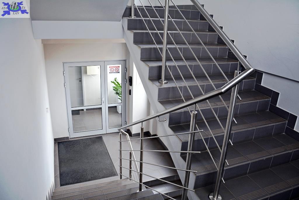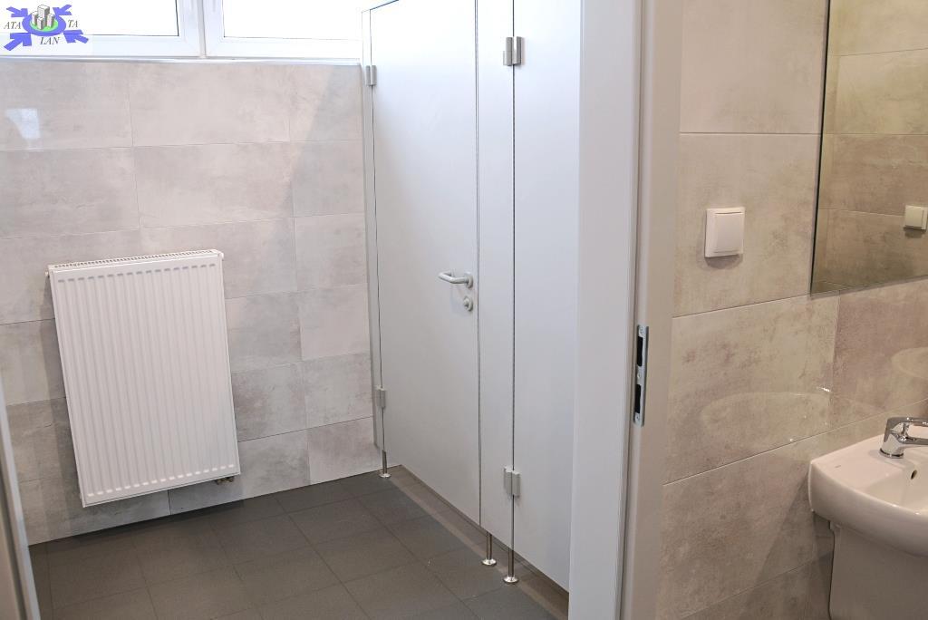Oświetlenie na korytarzu na czujki ruchu. Toalety męskie i damskie oraz pomieszczenia socjalne na początku i na końcu korytarza - do dyspozycji wszystkich najemców.