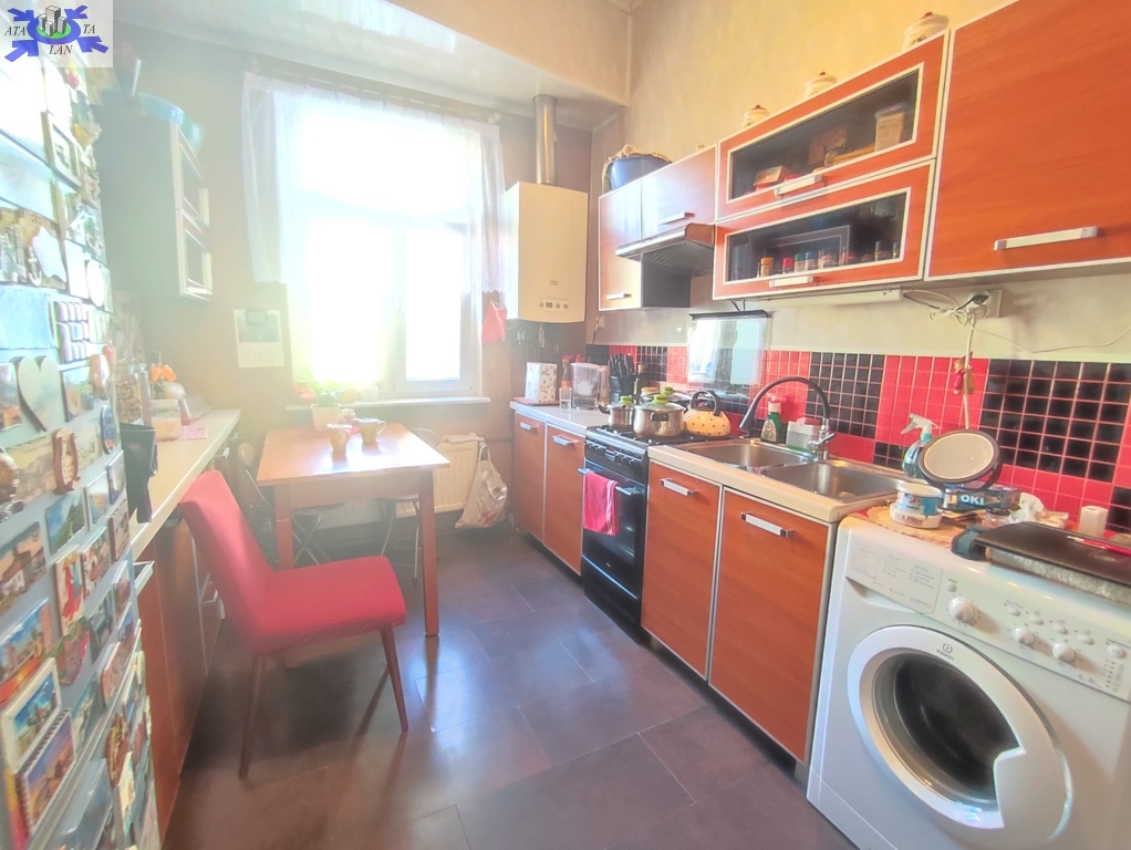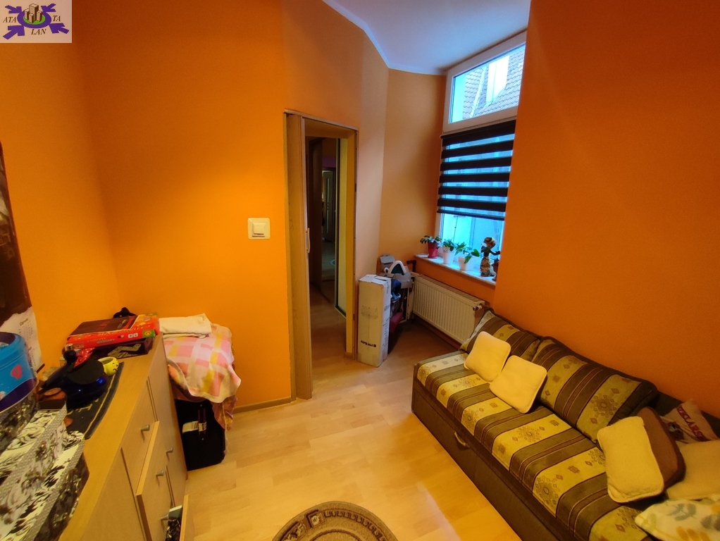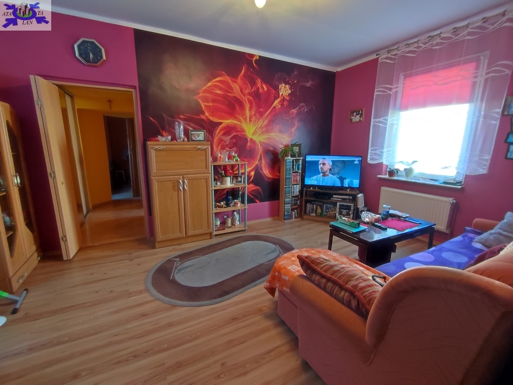 Mieszkanie obecnie składa się z salonu (prawie 19m2), trzech osobnych pokoi (10m2, 8m2, 7m2), osobno kuchni 10m2 z oknem, łazienki z toaletą (również z oknem) oraz dwóch przedpokoi. UWAGA - układ mieszkania częściowo przechodni (najpierw wchodzimy do holu, który ma po lewej stronie łazienkę a na wprost kuchnię i dopiero z kuchni wchodzimy do salonu, z którego znowu przechodzimy do pozostałych pokoi) !!! W 2015 roku w mieszkaniu zostały wymienione wszystkie instalacje (elektryczna, wodno-kanalizacyjna oraz grzewcza - na miedzianą). W pokojach panele na podłodze, ściany gładzone i malowane plus fototapeta na jednej ze ścian w salonie oraz kilka ozdobnych pasków tapety. W kuchni ciemniejsze panele na podłodze plus ozdobne kafelki na ścianie między meblami oraz sprzęt AGD (m.in. lodówka, kuchenka, okap i pralka). W łazience nowsza glazura i terakota plus wanna, umywalka z szafką, toaleta i grzejnik. W pierwszym przedpokoju starsza zabudowa (m.in. szafa) zaś w drugim przedpokoju nowsza, trzyczęściowa szafa typu Komandor. W cenie może pozostać większość umeblowania mieszkania widocznego na zdjęciach.
