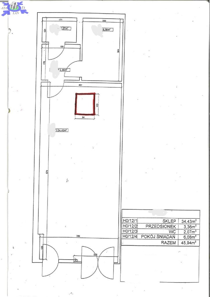 Na sprzedaż lokal usytuowany na parterze centrum handlowego. Na powierzchni ok 46m2 znajdują się otwarta przestrzeń o pow. 34m2, część socjalna 6m2 i wc. Lokal jest klimatyzowany. Czynsz wynosi 1170złw którym zawarte są wzystkie opłaty (m.in. ogrzewanie, woda) dodatkowo płatny prąd. W lokalu może być prowadzona różnego rodzaju działaność tj. handlowa, usługowa, gastronomiczna. Niezależne wejście z zewnątrz stwarza duże możliwości w prowadzeniu działalności.