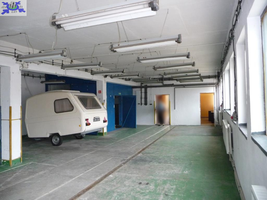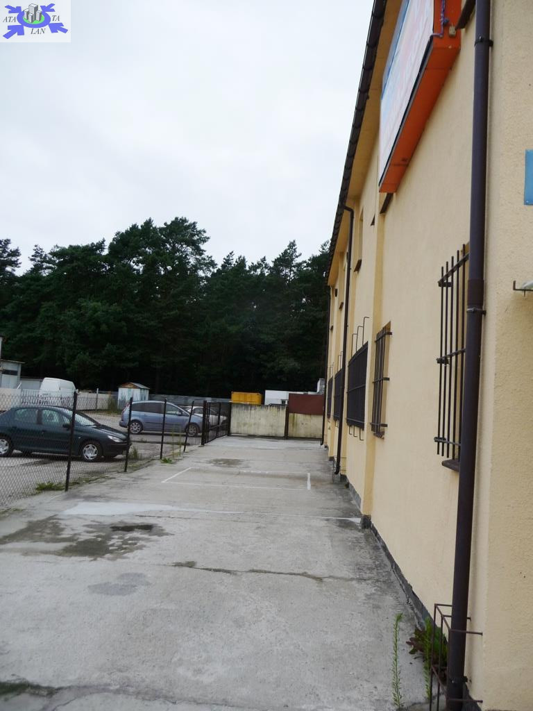 Na parterze znajdują się hala (135 m2), biuro wraz z recepcją (11 m2),kotłownia (16 m2), przedsionek (4 m2), korytarz ( 5,5 m2), WC (3 m2),klatka schodowa (3,5 m2), pomieszczenie z przyłączami elektrycznymi (3 m2). Wysokość hali 3,3 m, do wnętrza prowadzi brama segmentowa KRISPOL o wymiarach 280X230 cm, z drzwiami, podnoszona do sufitu (brak progu umożliwia wjazd do hali wózka widłowego lub samochodu.