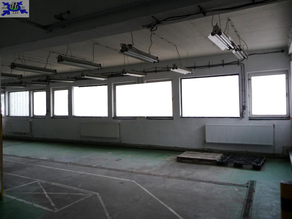 Na piętrze hala (90 m2), 3 pomieszczenia biurowe (22/19/15 m2), serwerownia (6 m2), pokój socjalny (8,5 m2), 2 łazienki z WC (po 4,5 m2), korytarz (10 m2). Wysokość hali na piętrze od 2,7 do 3,3 m. Podłoga w hali betonowa, niepyląca, z kratką ściekową wzdłuż całej hali, oświetlenie jarzeniowe z możliwością włączania sektorowego ( duża ilość punktów świetlnych).