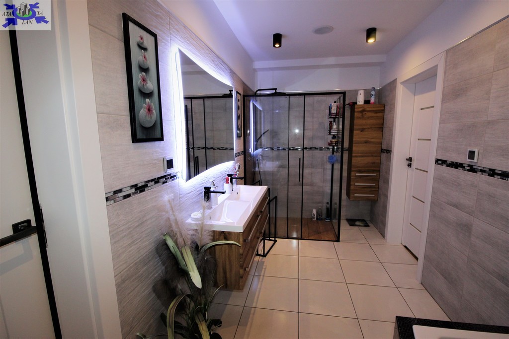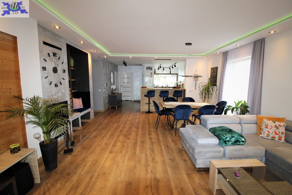Niewątpliwym atutem domu jest system rekuperacji (system wentylacji mechanicznej), gdzie za pomocą telefonu podejrzymy wilgotność oraz jakość powietrza, jak również stacja uzdatniania wody, dzięki której mamy pewność, że woda nie posiada kamienia.