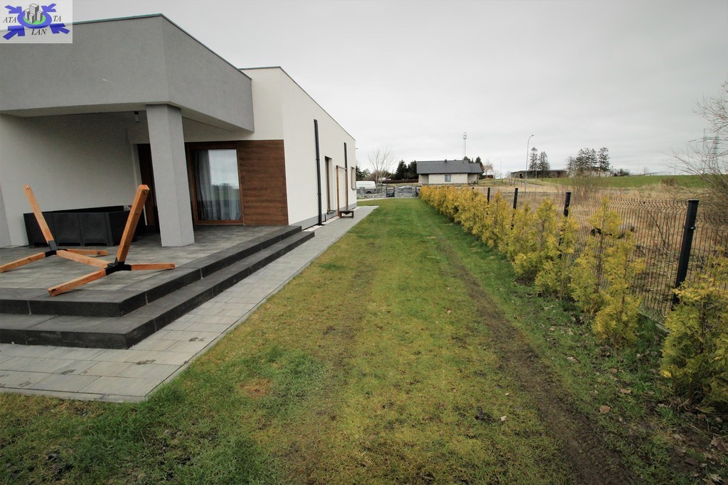 Całość posesji ogrodzona. Brama wjazdowa , furtki, brama garażowa otwierane za pomocą pilota lub smartfona. Zamontowany monitoring oraz system alarmowy z powiadomieniem na telefon.