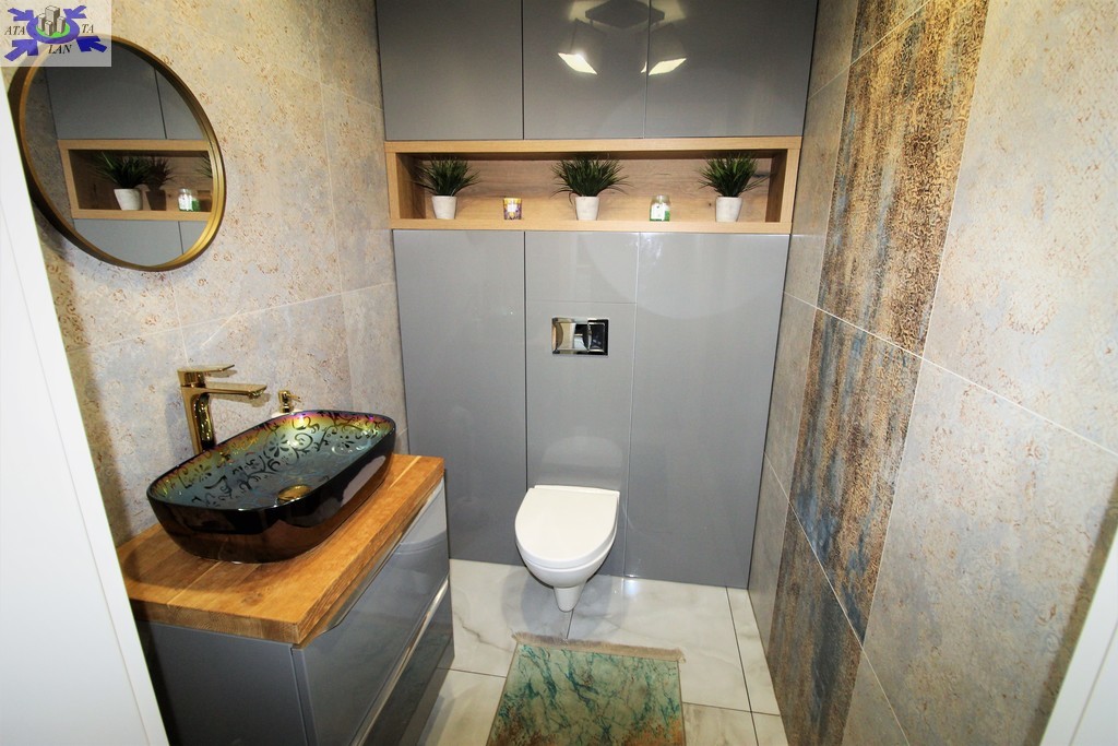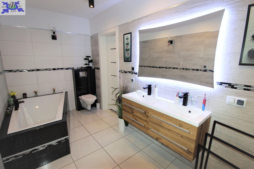Niewątpliwym atutem domu jest system rekuperacji (system wentylacji mechanicznej), gdzie za pomocą telefonu podejrzymy wilgotność oraz jakość powietrza, jak również stacja uzdatniania wody, dzięki której mamy pewność, że woda nie posiada kamienia.