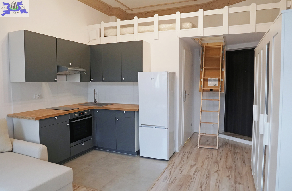 Kawalerka 1 posiada duży jasny pokój z wyjściem na balkon, aneks kuchenny i łazienkę. Dużym atutem jest spora antresola gdzie najemca może spać. Łazienka w nowoczesnej kolorystyce. W pełni umeblowane i wyposażone.