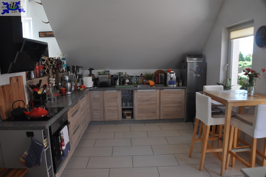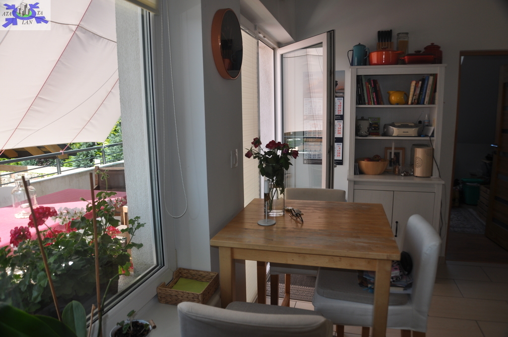 -kuchnia z jadalnią (15,6m2) z wyjściem na 20-to metrowy taras w pełni umeblowana i wyposażona (kuchenka, zmywarka, lodówka)