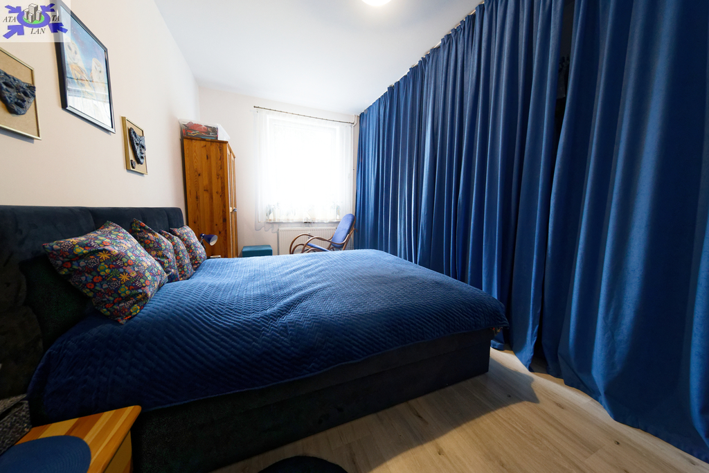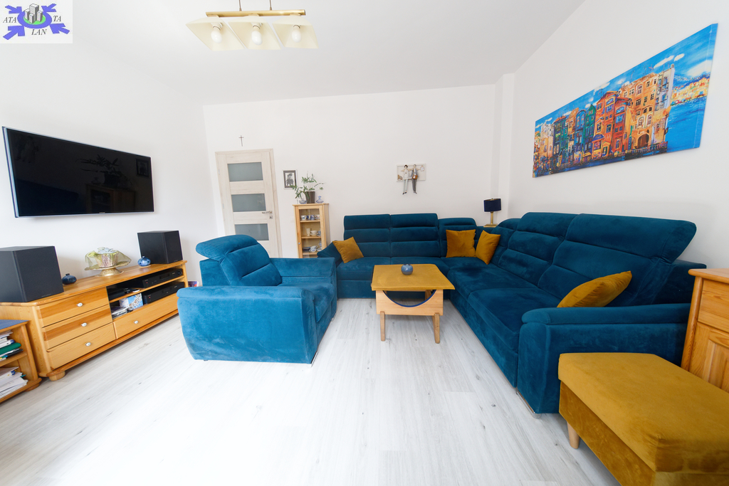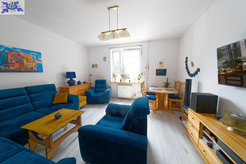 Nieruchomość znajduje się na parterze 2 piętrowego zadbanego budynku. Na metraż mieszkania składa się przestronny salon, sypialnia, trzeci pokój, który aktualnie pełni funkcję biura, osobna kuchnia z loggią oraz łazienka z prysznicem i WC. Mieszkanie nie wymaga żadnego wkładu finansowego, jest gotowe do zamieszkania. W mieszkaniu był kapitalny remont, wszystkie instalacje zostały wymienione. Lokal jest bardzo cichy, ściany mają grubość 36 cm. Do mieszkania przynależy piwnica o powierzchni 18 m2.