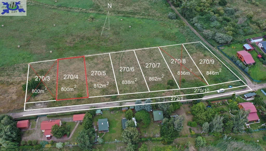 Działki nieogrodzone, położone wzdłuż drogi dojazdowej. Do jeziora ok. 50m.