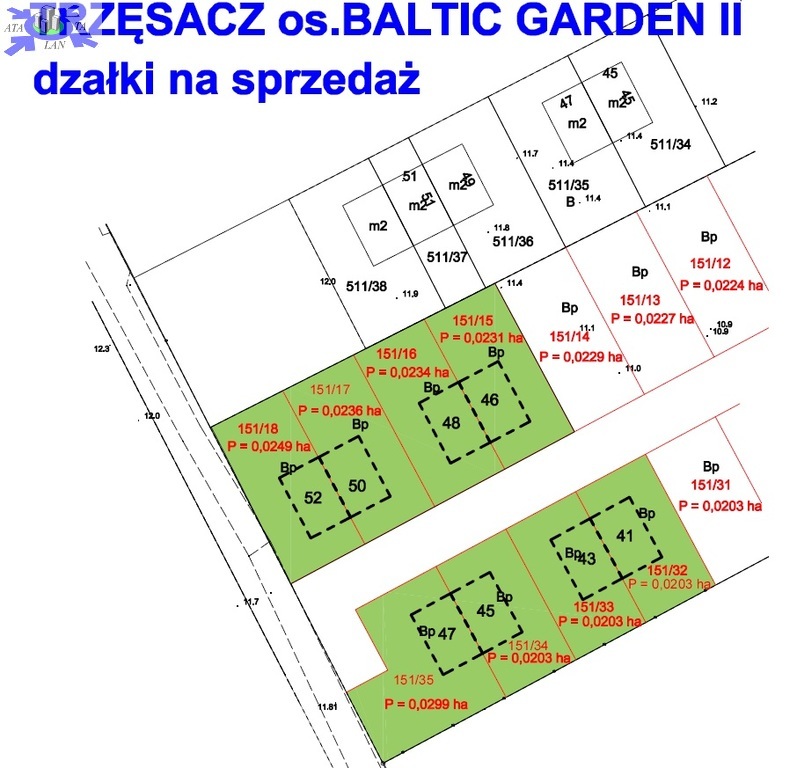 Powierzchnia działek kształtuje się od 203m2 do 299m2 (pod połówkę bliźniaka). Konieczność zakupu 2 działek łącznie pod cały dom w zabudowie bliźniaczej - 2 segmenty.