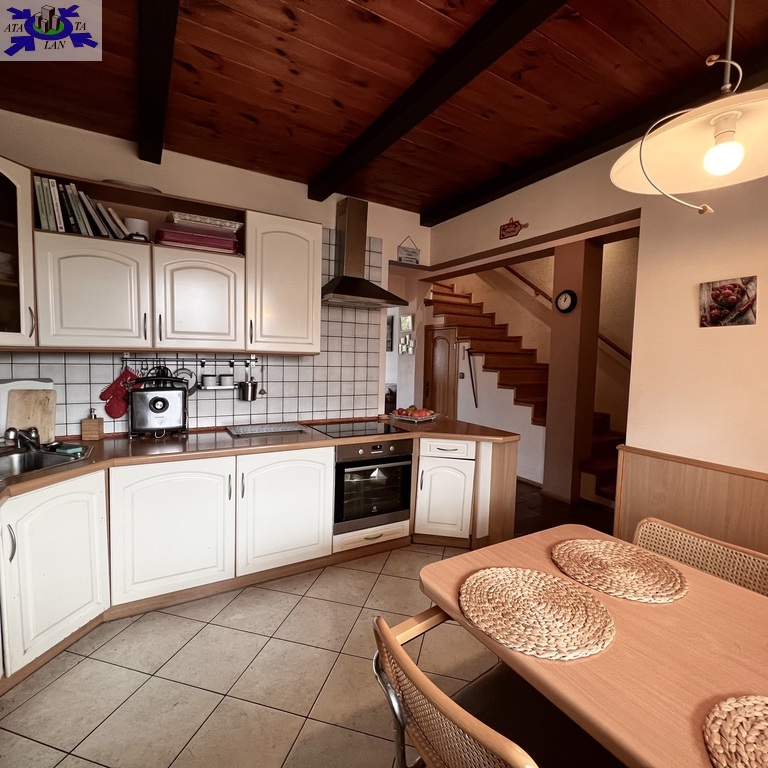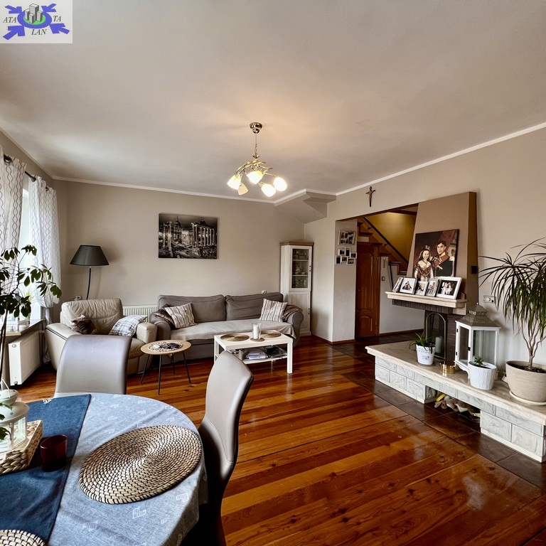 Parter stanowi niewielki przedpokój, oddzielna kuchnia, łazienka z WC, przestronny salon z kominkiem, oraz wyjściem na duży taras, z którego jest zejście do ogródka.