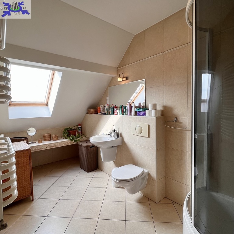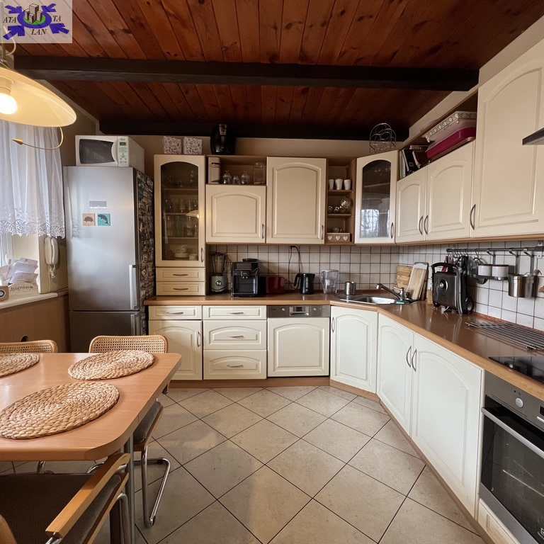 Kuchnia wyposażona w meble w zabudowie kuchennej, zmywarkę, lodówkę, płytę indukcyjną oraz okap. Wszystkie łazienki wyposażone w umywalkę, WC oraz grzejnik drabinkowy na parterze oraz poddaszu prysznic a na piętrze jest wanna.