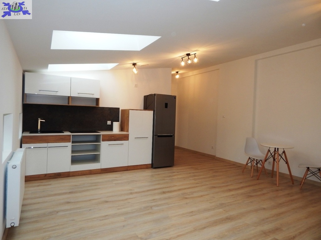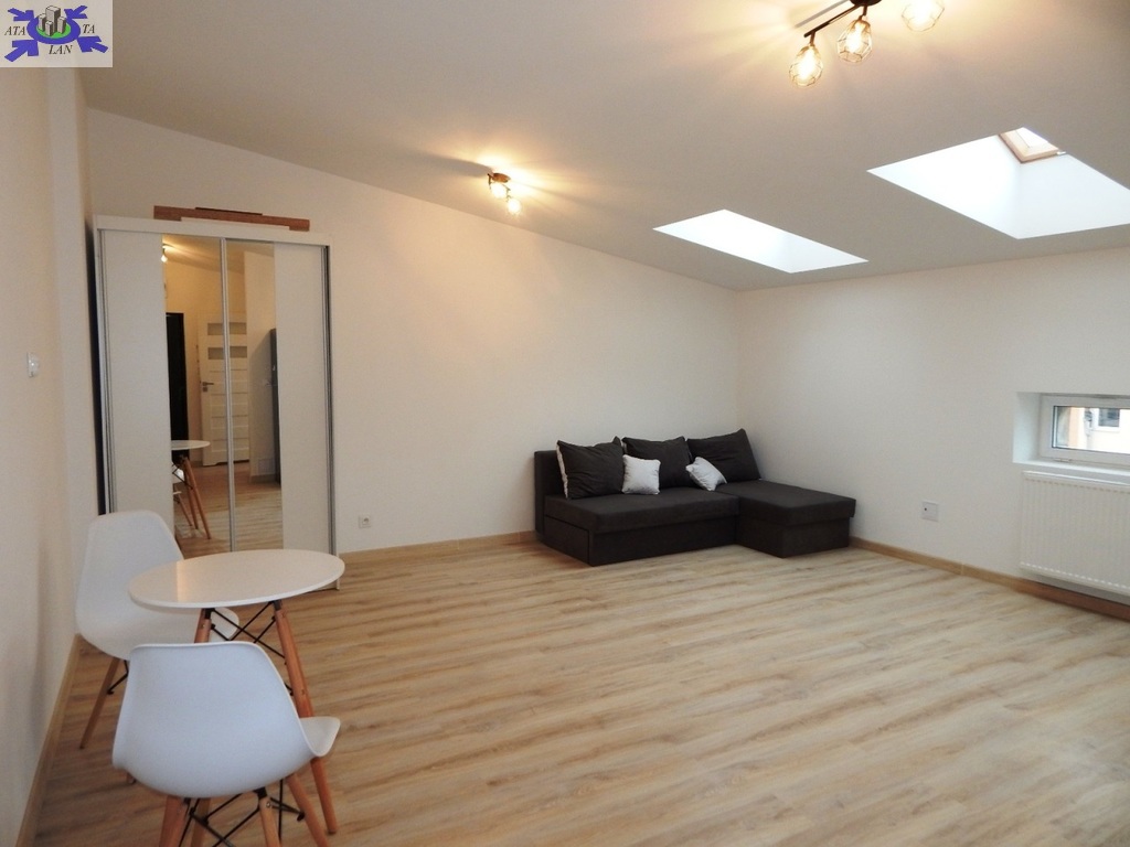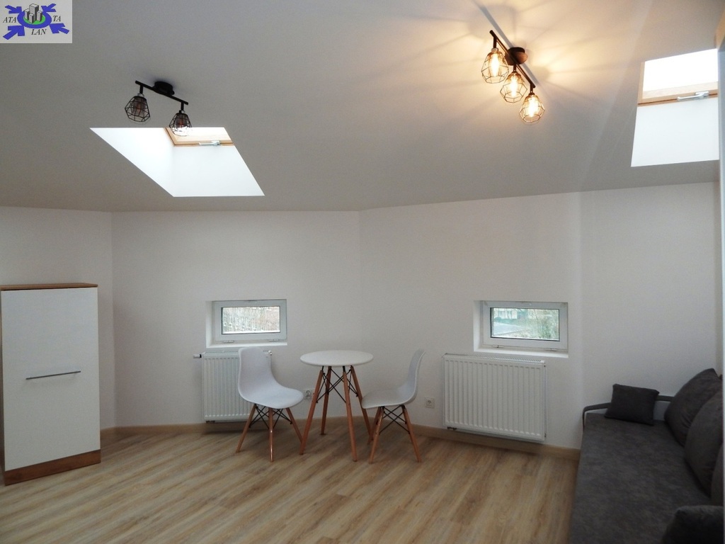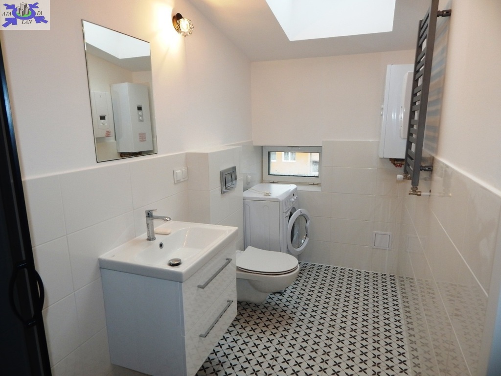Doświetlenie oknami połaciowymi (w łazience również) daje niesamowity klimat w mieszkaniu. Nieuciążliwe skosy - minimalna wysokość 205 cm.