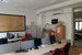 Pomieszczenie biurowe doświetlone światłem dziennym oraz oświetleniem rastrowym.