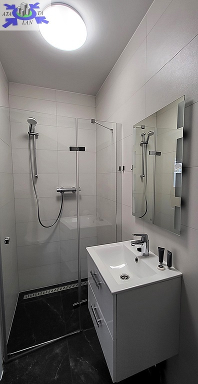 - Parter - salon z aneksem kuchennym, łazienka z toaletą i prysznicem oraz taras,
