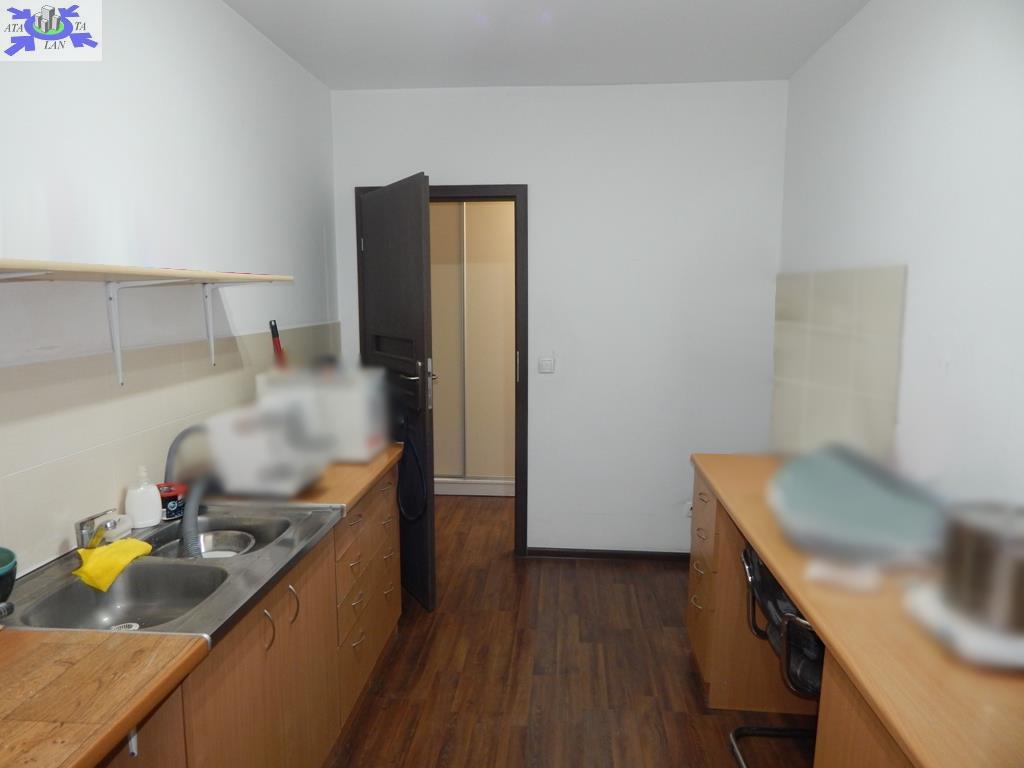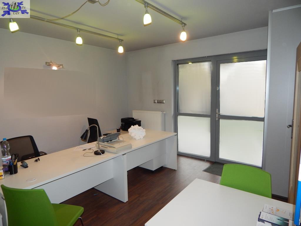 - w części biurowo-usługowej z osobnym wejściem z ulicy (sala sprzedaży/obsługi klienta ok. 20 m2, gabinet (ok. 4 m2), pomieszczenie socjalne z aneksem kuchennym oraz toaleta).