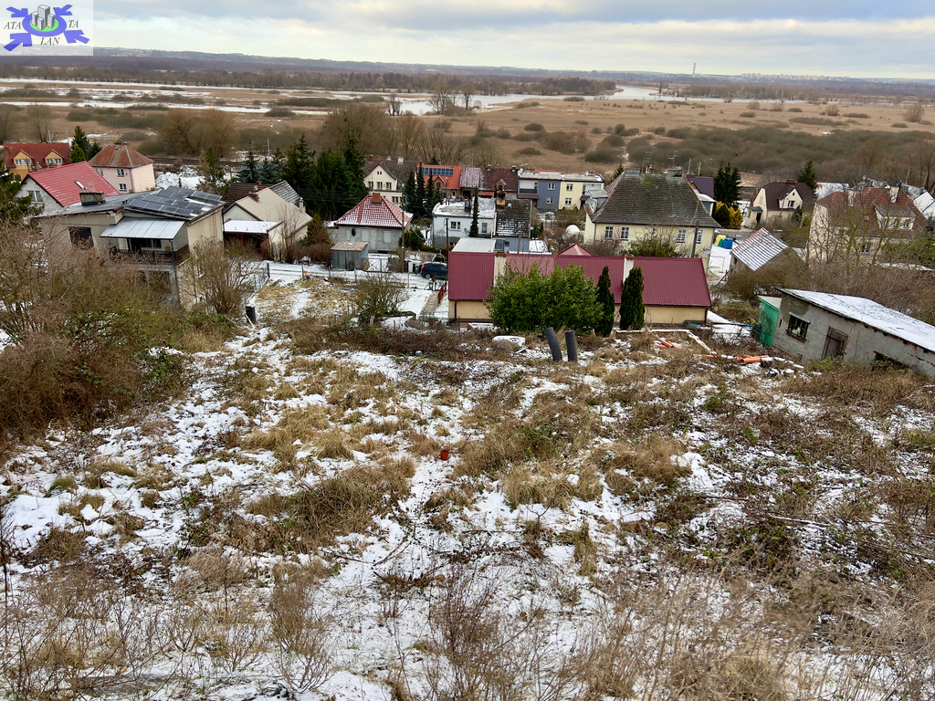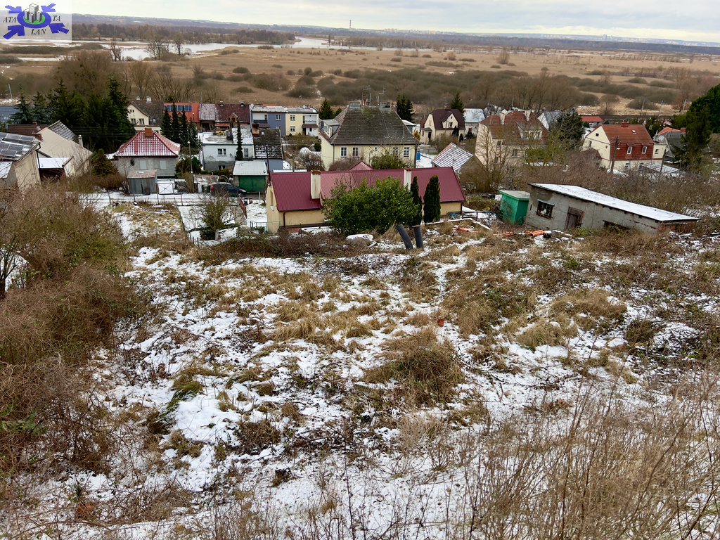 Nieruchomość leży na pochylonym terenie, z widokiem na panoramę Szczecina i Rezerwat przyrody Kurowskie Błota i Kanały.