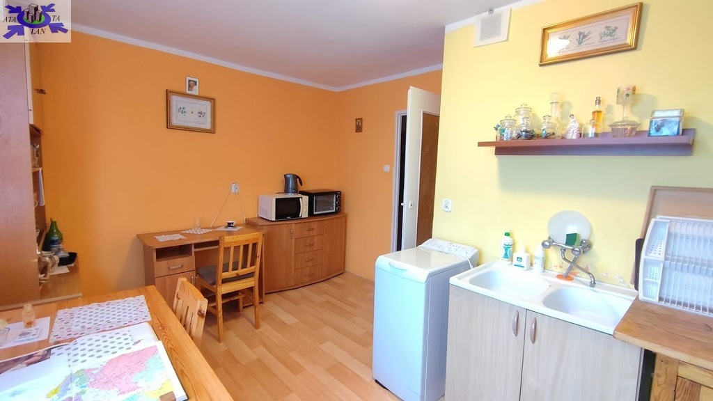 Ściany w pomieszczeniach malowane, podłogi wykończone panelami w przedpokoju, kuchni i w pokojach panelami. Łazienka z WC częściowo w glazurze, podłoga wykończona terakotą. Okna PCV. Ściany przedpokoju wykończone boazerią. Na chwilę obecną, w związku z likwidacją lokalnej kotłowni istnieje konieczność wykonania instalacji ogrzewania mieszkania we własnym zakresie. W chwili obecnej mieszkanie jest ogrzewane grzejnikiem elektrycznym (dmuchawa). Z pokoju dziennego wyjście na balkon.