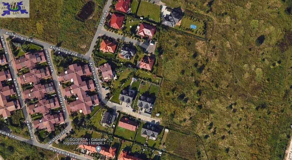 Działka budowlana z gotowym pozwoleniem na budowę trzech budynków jednorodzinnych w zabudowie szeregowej w Mierzynie przy ulicy Archeologicznej.