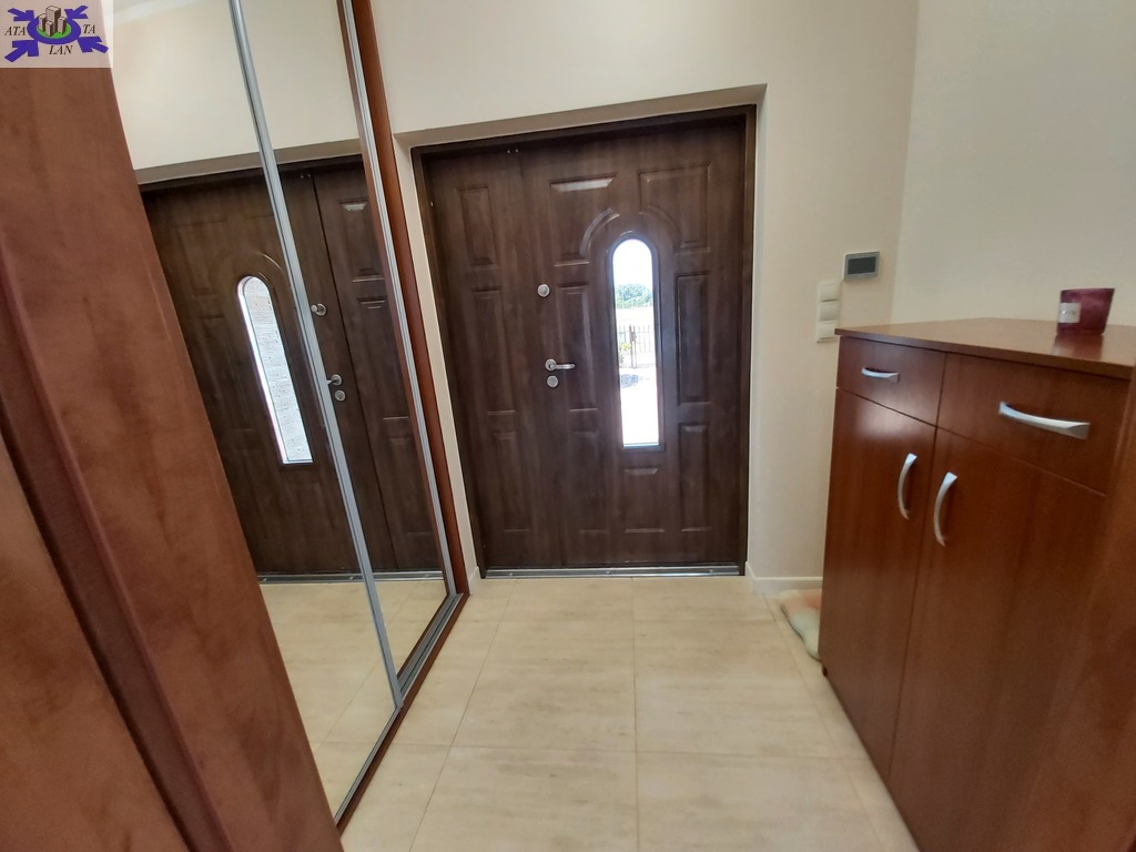 Dom wolnostojący - do domu wchodzimy przez wiatrołap zabudowany szafą przesuwną- garderoba, dalej hol, duży przestronny salon z wyjściem na taras, widna jasna kuchnia , wc oraz garaż jednostanowiskowy i pomieszczenie gospodarcze ( kotłownia).