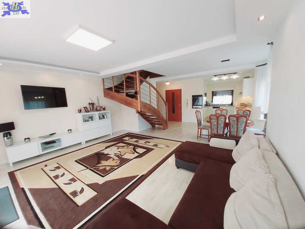 Na piętrze trzy duże ustawne pokoje , w dwóch z nich wyjścia na balkon , trzeci pokój z wejściem do dużej wygodnej garderoby, duża łazienka typu pokój kąpielowy z wanną narożną oraz kabiną prysznicową.