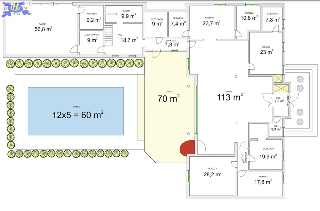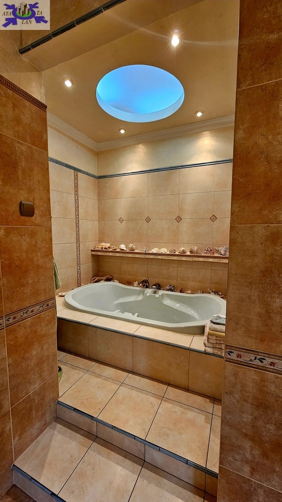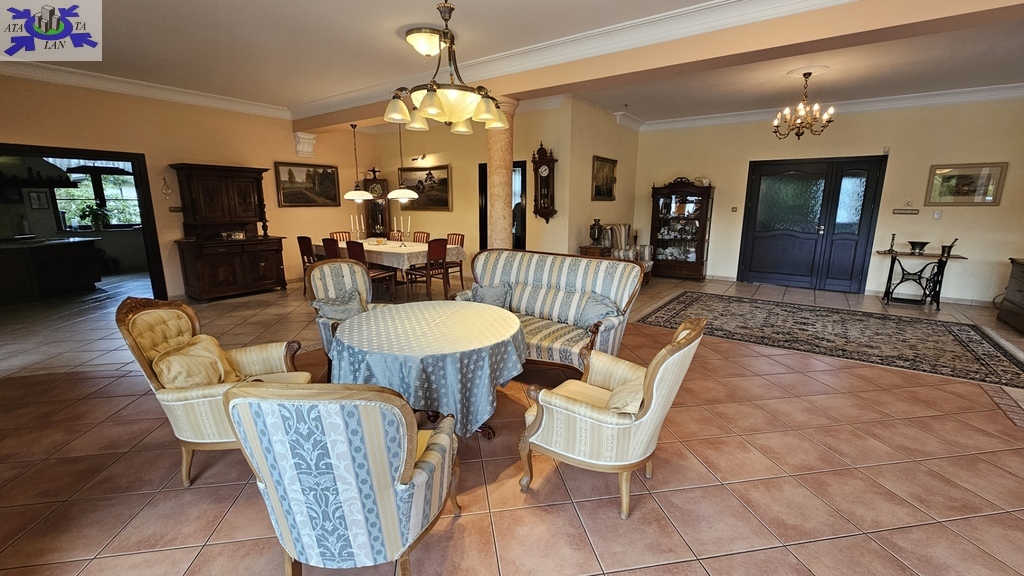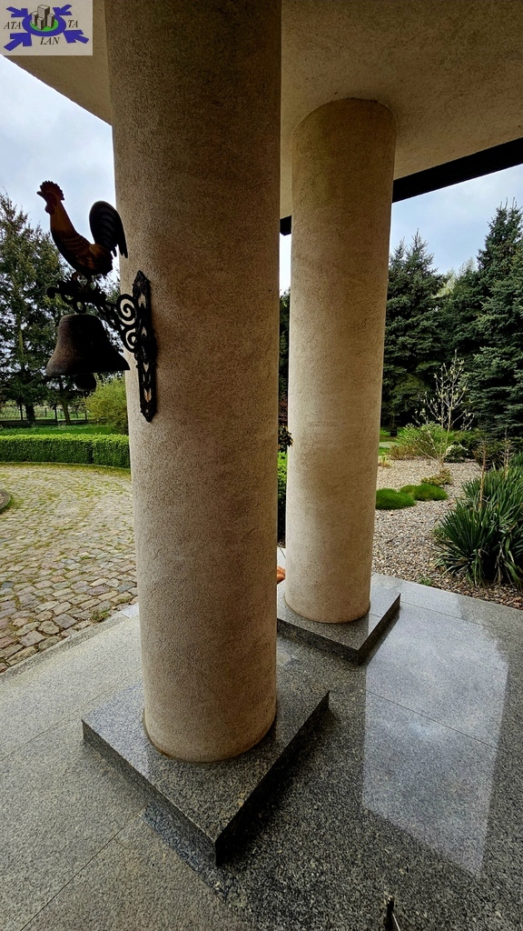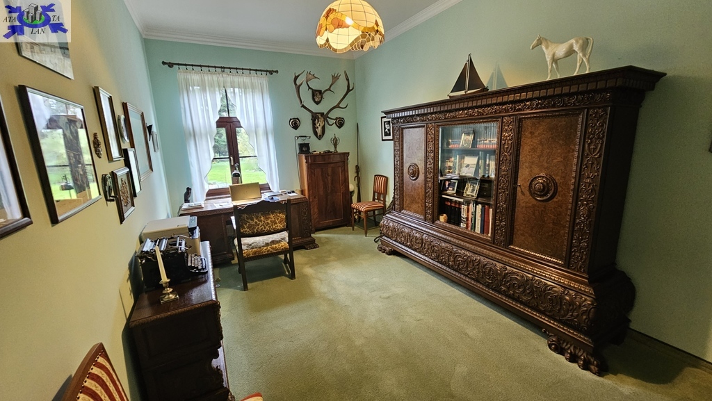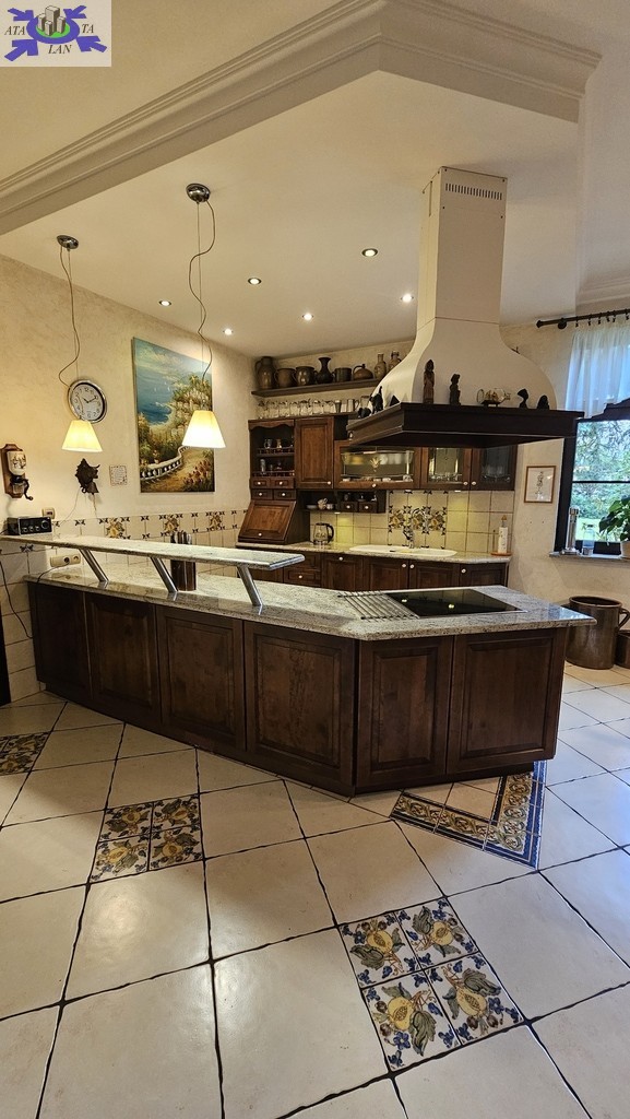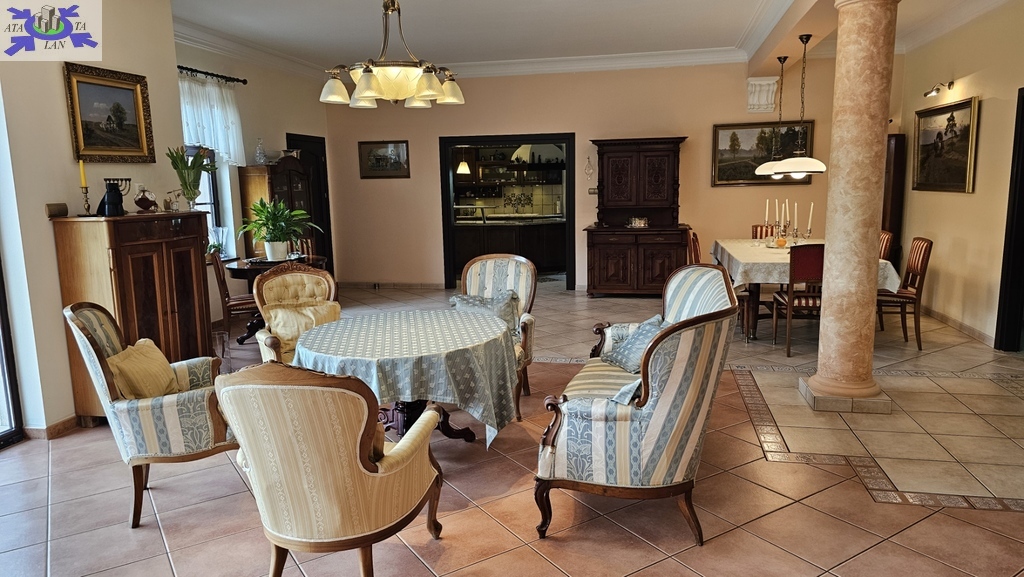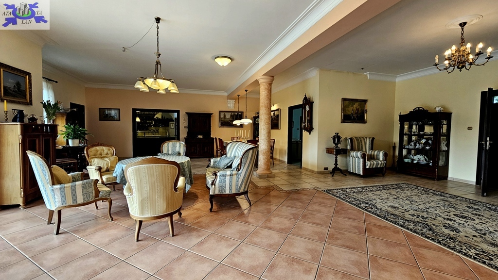 Do sprzedania nietuzinkowa rezydencja położona na dwu hektarowej działce otoczonej otuliną prywatnego lasu. Nieruchomość wybudowana w formie dworku z prywatnym basenem jeziorkiem oraz domkiem dla gości. Całość domu wybudowana w 2001 roku z bloczków firmy Fortis pokryta dachówką cementową. Okna PCV z szybami antywłamaniowymi w kolorze palisander. CO i CW własne gazowe + wspomaganie poprzez baterie solarne. Zamontowana instalacja fotowoltaiczna o mocy 9,5 kWh co w całości pokrywa zapotrzebowanie w energie elektryczną całego domu. Na 716 m powierzchni całkowitej składają się hol, WC, trzy sypialnie, kuchnia, jadalnia, spiżarnia, trzy łazienki razem z WC, pomieszczenia gospodarcze, pralnia, pokój relaksu z sauną, garaż trzy stanowiskowy z kanałem. 113- metrowy salon z wyjściem poprzez system panoramicznego okna przesuwnego typu HS na duży taras i zejście do basenu. Kominek w salonie + kominek z grillem za tarasie ogrodowym. Basen o wymiarach 12x5, woda z własnego ujęcia ze studni ogrzewana poprzez maty solarne oraz pompę ciepła. Całość poddasza użytkowego wielkości 288 m2 do dodatkowego zagospodarowania. Obok domu znajduje się 70 m2 całoroczny domek dla gości (salon +sypialnia + kuchnia +łazienka). Część ogrodowa wyposażona w system automatycznego podlewania z własnej studni głębinowej. Całość posesji zagospodarowana 30-sto letnim drzewostanem z wkomponowanym zarybionym stawem. Dwa lata temu została wymieniona na zupełnie nową oczyszczalnia biologiczna dla całej posesji. Rezydencja dla osób cenionych prywatność spokój i komfort. Zapraszamy na prezentację opisywanej rezydencji. Chcesz się poczuć luksusowo to zapraszam do osobistej weryfikacji i kontaktu z maklerem prowadzącym.