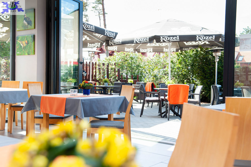 The subject of sale is a year-round service and recreation guesthouse located in the attractive seaside town of Niechorze. The guesthouse is perfectly located on the border of Niechorze / Pogorzelica, in the first line of buildings, next to the beach. It is located on a plot of area. 670 m2. Ground floor - consists of two large guest rooms, a bar, kitchen rooms, warehouses, and guest toilets. Entrance from the street on two sides and exit to the large catering garden through folding doors that span the entire width of the building. The garden can be built with a winter garden with an area of approx. 52 m2. Back room with entrance from the yard and exit to parking platforms for 8 cars located at the back of the building. 1st floor - 4 apartments for 2 people with bathrooms and terraces and one apartment for 3 people with a bathroom and terrace. Attic - 3 apartments for 2 people with bathrooms and terraces. All rooms are bright, furnished with double or single beds, wardrobes, TV and public Wi-Fi. Each room is spacious, equipped with comfortable beds, a flat-screen TV, a radio and a modern bathroom with a shower, which guarantees guests privacy and peace. The facility is heated with gas and solar panels (water). The facility was built in 2011. using the latest technologies in the field of window joinery, air conditioning, heat recovery, kitchen equipment and over the years supplemented with modern solutions serving, above all, the comfortable stay of guests.