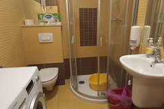 Łazienka razem z wc (kabina prysznicowa, umywalka, szafki pralka)
