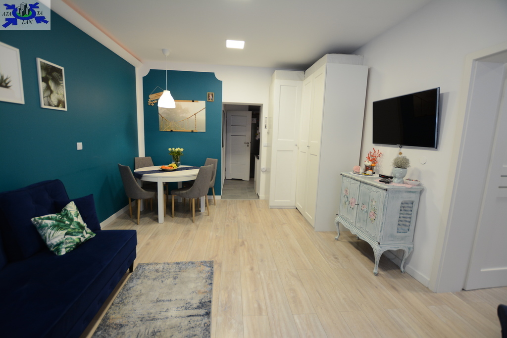 Na sprzedaż bezczynszowe mieszkanie dwu pokojowe położone w spokojnej lokalizacji a zarazem blisko do centrum, zaledwie 200m do plaży oraz 50m do Wolińskiego Parku Narodowego.