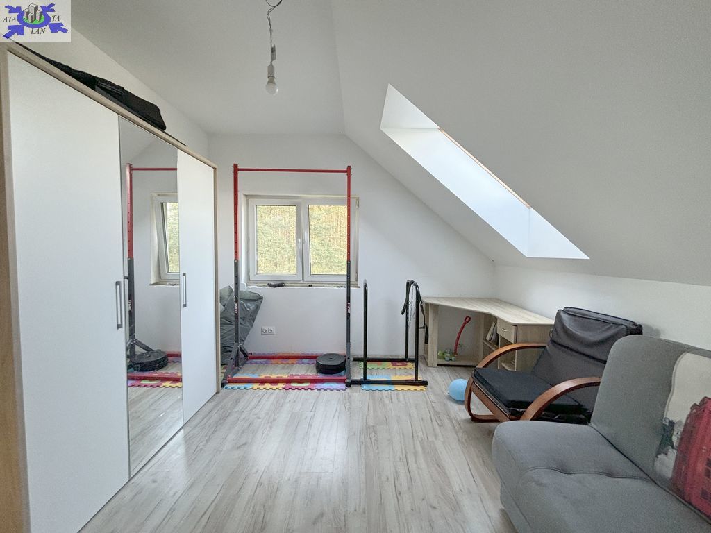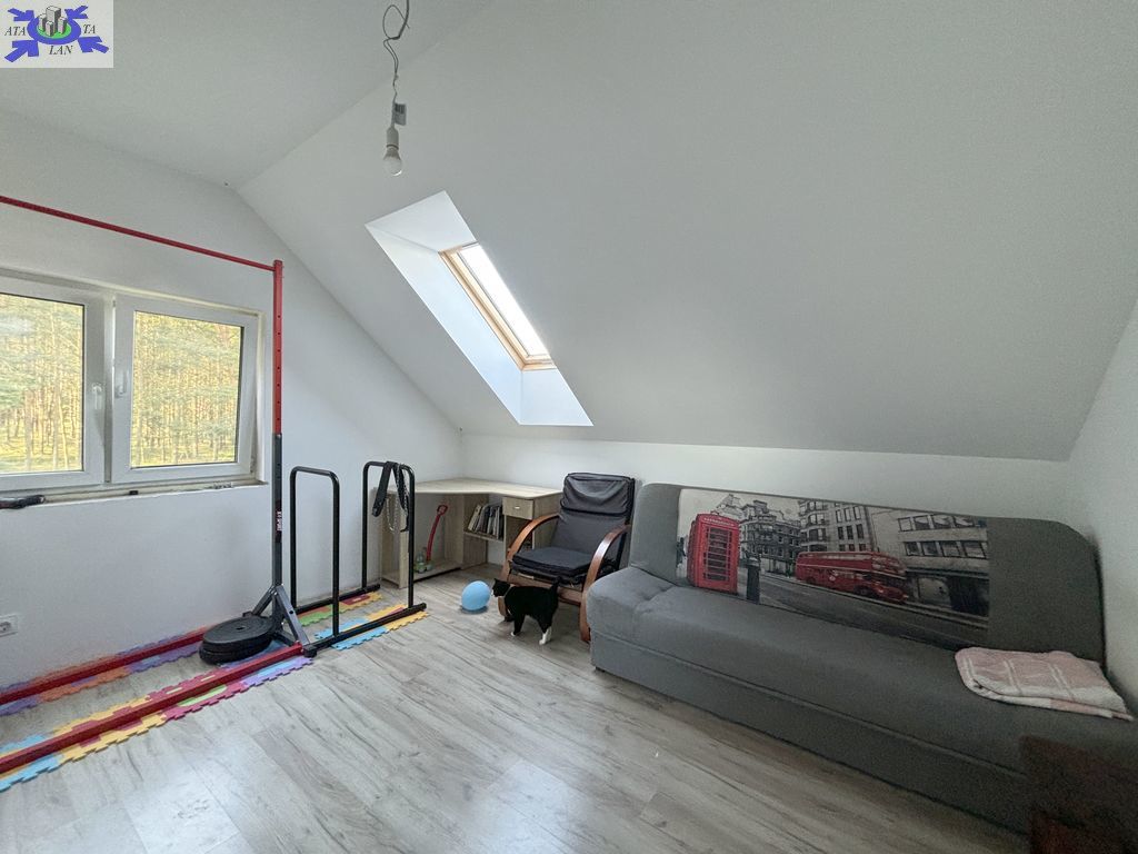 W pokojach na piętrze na podłogach panele, ściany gładzone i malowane. W korytarzu na piętrze gres. Łazienka i garderoba na górze do zrobienia.