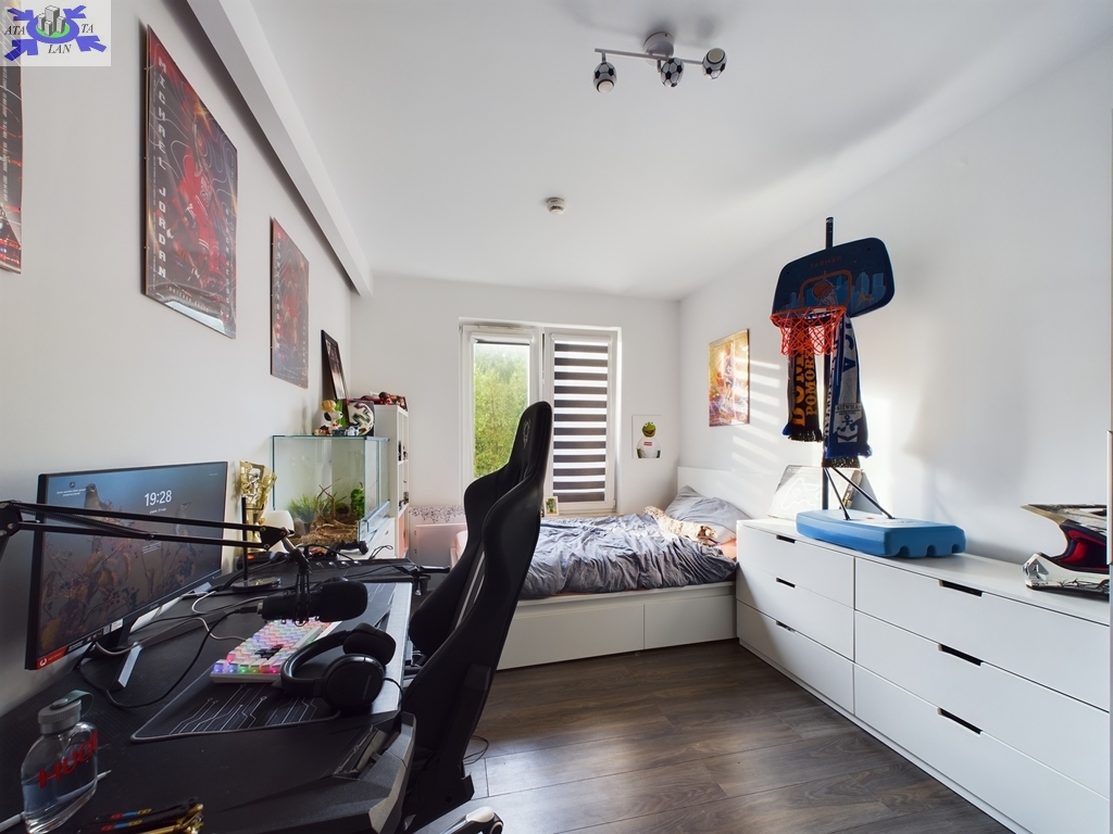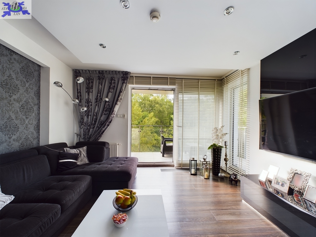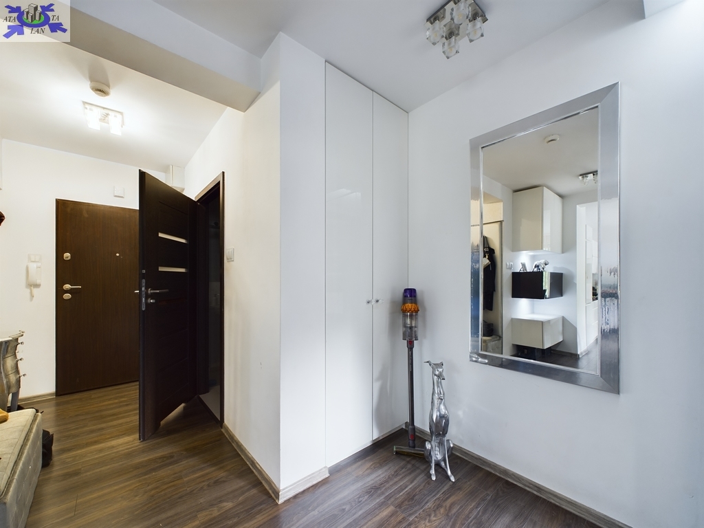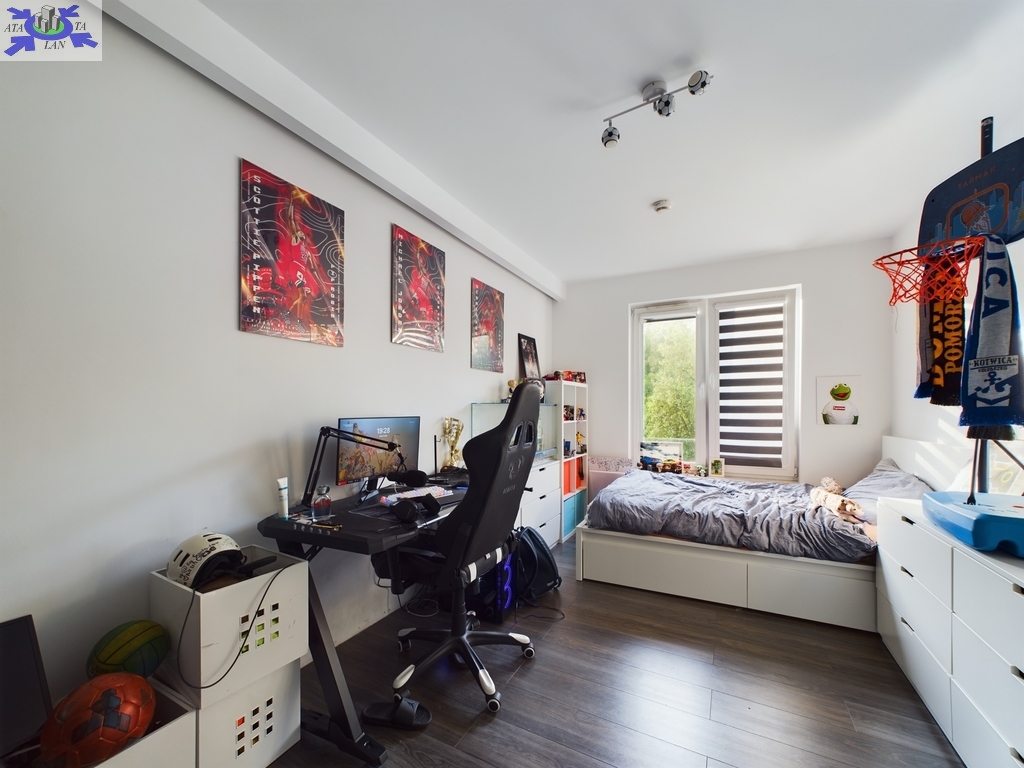 - Jasny przestronny salon z aneksem kuchennym, z którego przedostać możemy się również na balkon,