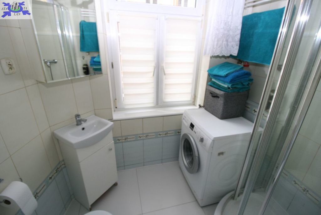 - kuchnia ok 8 m2 z przejściem do widnej łazienki z wc - ok 3 m2.