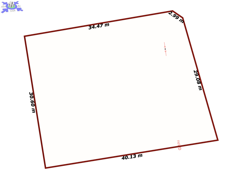 Kształt działki zbliżony do prostokąta, wymiary ok. 34m x 30m.