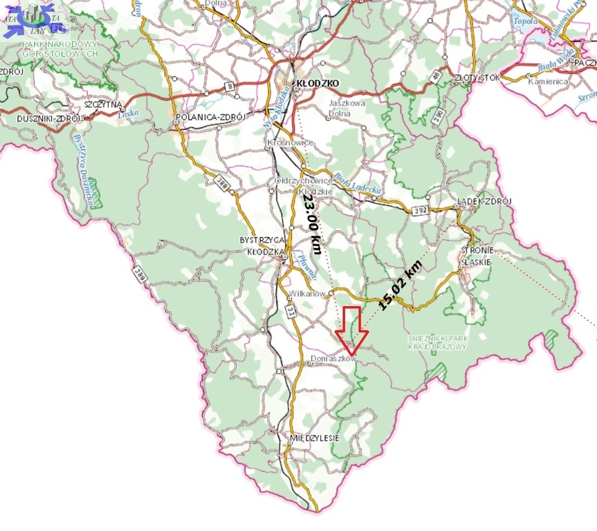 W pobliżu Śnieżnickiego Parku Narodowego , trasy rowerowe i trekkingowe, widok na góry, bliskość granicy z Czechami, ok 15. km Miejscowość Lądek-Zdrój oraz 23 km Kłodzko.
