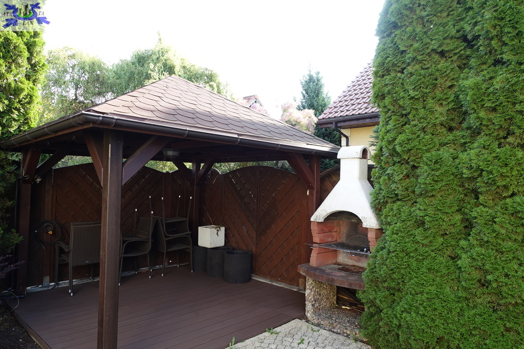 W ogrodzie altana, miejsce do grillowania oraz okrągły basen z podgrzewaną wodą o średnicy 5,5 m.