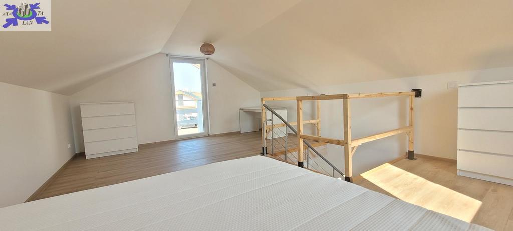 - otwarta przestrzeń z wyjściem na balkon ( ok. 3m2), mogąca służyć jako sypialnia jak również miejsce do pracy.