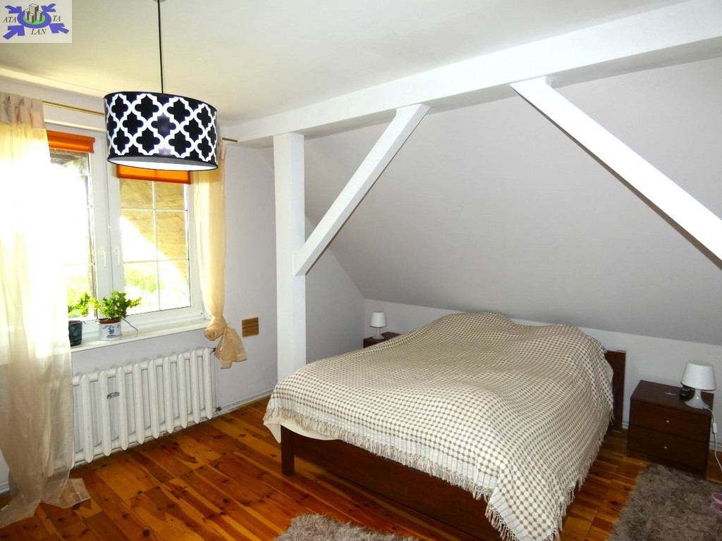 Na powierzchnię mieszkalną budynku na parterze składa się salon z kominkiem, trzy sypialnie, łazienka, kuchnia ze spiżarnią, garderoba, przedpokój i hol. Na poddasze prowadzą drewniane schody gdzie znajdują, cztery sypialnie, łazienka i hol.
