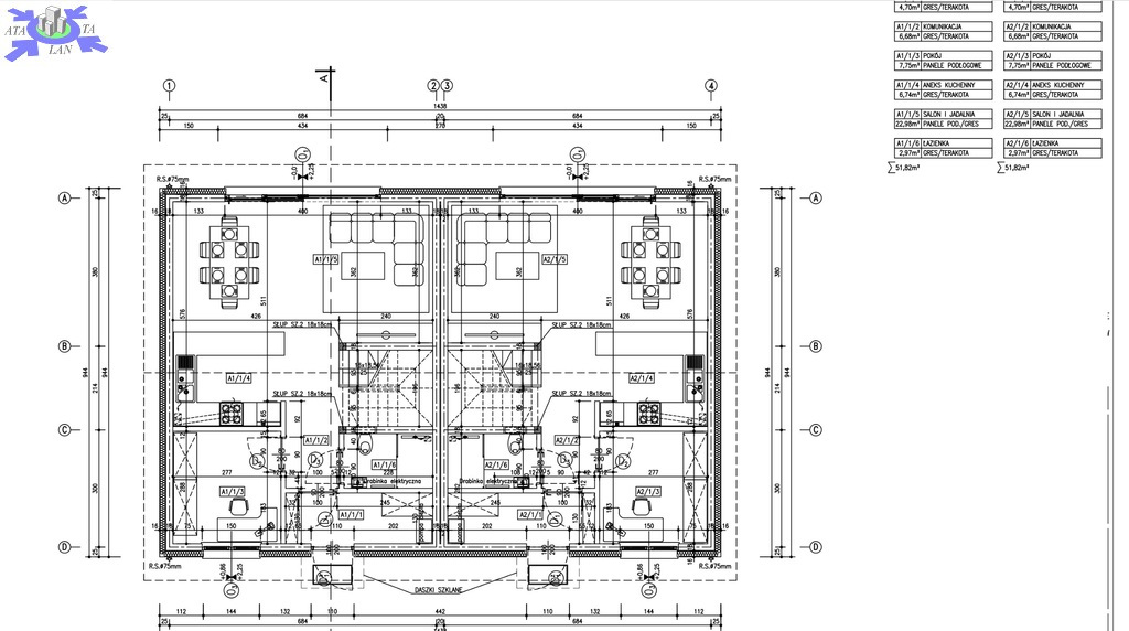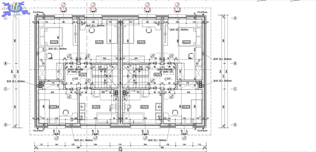 SILIKATOWYCH gr. 18cm + styropian gr. 20 cm [front i tył budynku],
