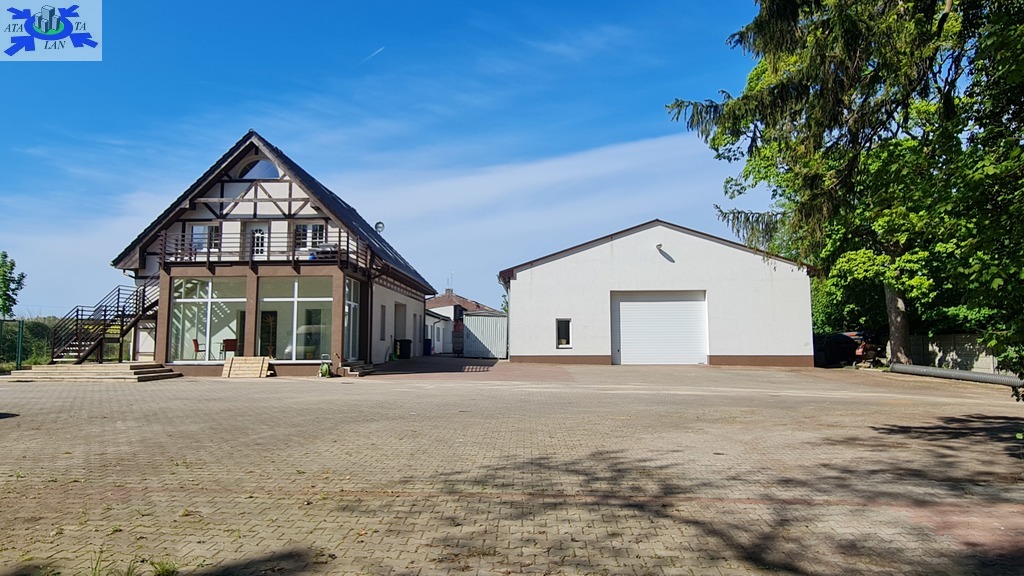 Nieruchomość zlokalizowana w Gryficach (miasto powiatowe w odległości 100 km od Szczecina, 100 km od Koszalina, 25 km od morza). Miejsce idealne pod hurtownię, magazyn z biurem, punkt przeładunkowy, dom mieszkalny z możliwością prowadzenia działalności, lekką produkcję. Składa się z wolnostojącego domu o całkowitej powierzchni ok. 300m2, oraz hali o takiej samej powierzchni. Działka o powierzchni blisko 2300m2 wyłożona polbrukiem, ogrodzona. Budynek mieszkalny składa się z trzech kondygnacji-na parterze duży garaż mogący służyć jako magazyn, część biurowa i socjalna. Piętro- bardzo duży pokój konferencyjny z możliwością podziału, kuchnia, łazienka. Na drugim piętrze znajdują się dwie sypialnie. Ogrzewanie gazowe, dach kryty dachówką ceramiczną, woda i kanaliza miejska.