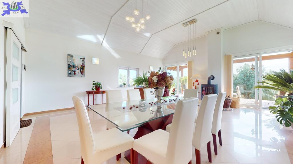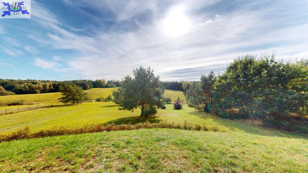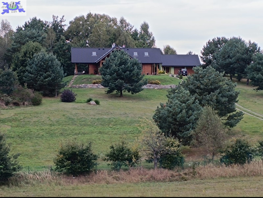 Dom położony na wzniesieniu z pięknym widokiem na lasy.