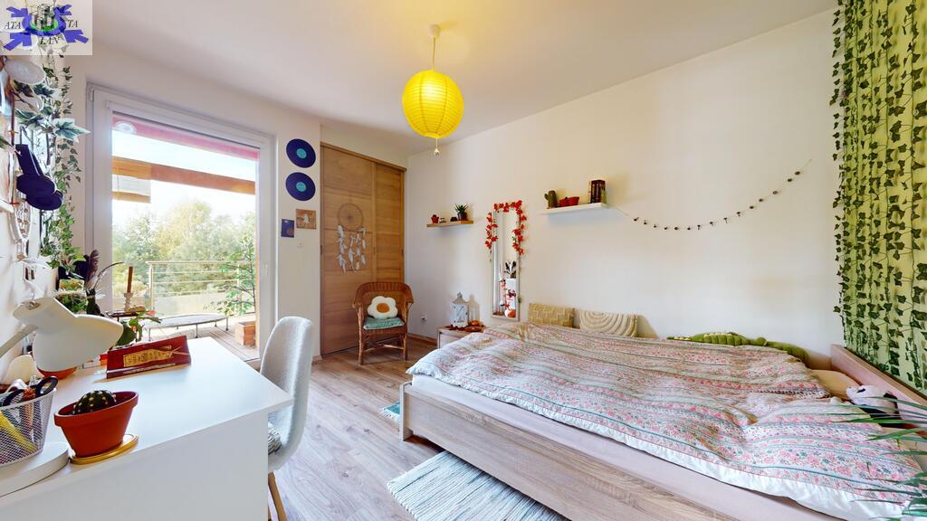 Architektura domu łączy w sobie klasyczny styl z nowoczesnymi udogodnieniami. Duże okna w salonie zapewniają niesamowite doświetlenie wnętrz i pozwalają cieszyć się widokiem na otaczającą zieleń o każdej porze dnia. Dom jest również doskonale ocieplony, co sprawia, że mieszka się w nim komfortowo zarówno zimą, jak i latem.