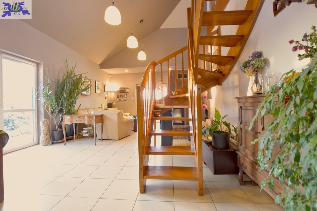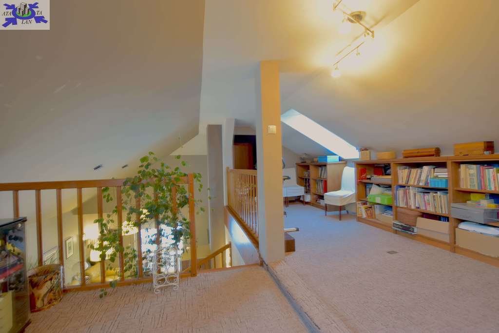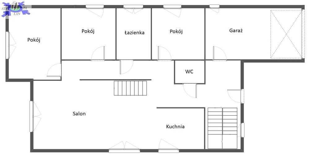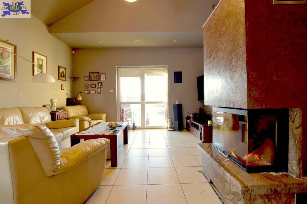 Parter słoneczny salon połączony z jadalnią oraz z półotwartą kuchnią, trzy przestronne sypialnie, łazienka, wc, wiatrołap oraz garaż w bryle budynku. Nad salonem bardzo wysoka przestrzeń. Z salonu oraz z jadalni wyjścia na duży taras, w salonie kominek, z salonu prowadzą schody na antresolę. Na antresoli znajduje się otwarta przestrzeń oraz dwie garderoby, istnieje możliwość zamknięcia przestrzeni na antresoli.