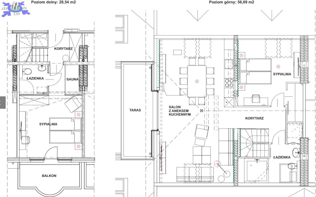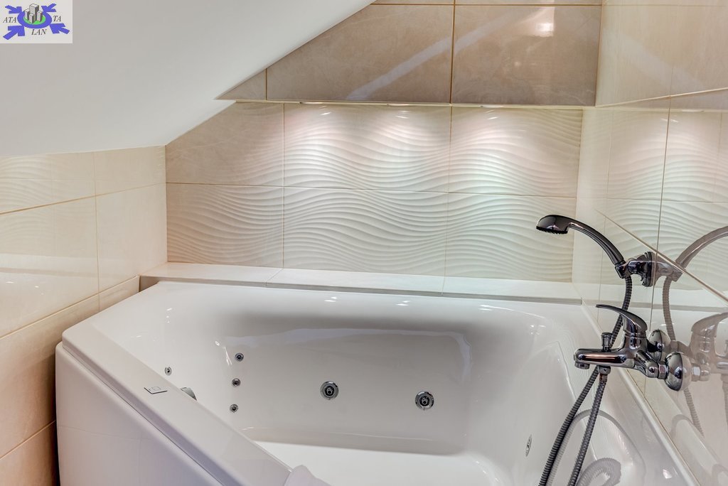 - na 2. poziomie duży salon z jadalnią, aneksem kuchennym i tarasem 18m 2, sypialnia , łazienka z dużą wanną narożną z hydromasażem i wc