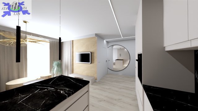 - przestronnego salonu z aneksem kuchennym - 20.14 m2